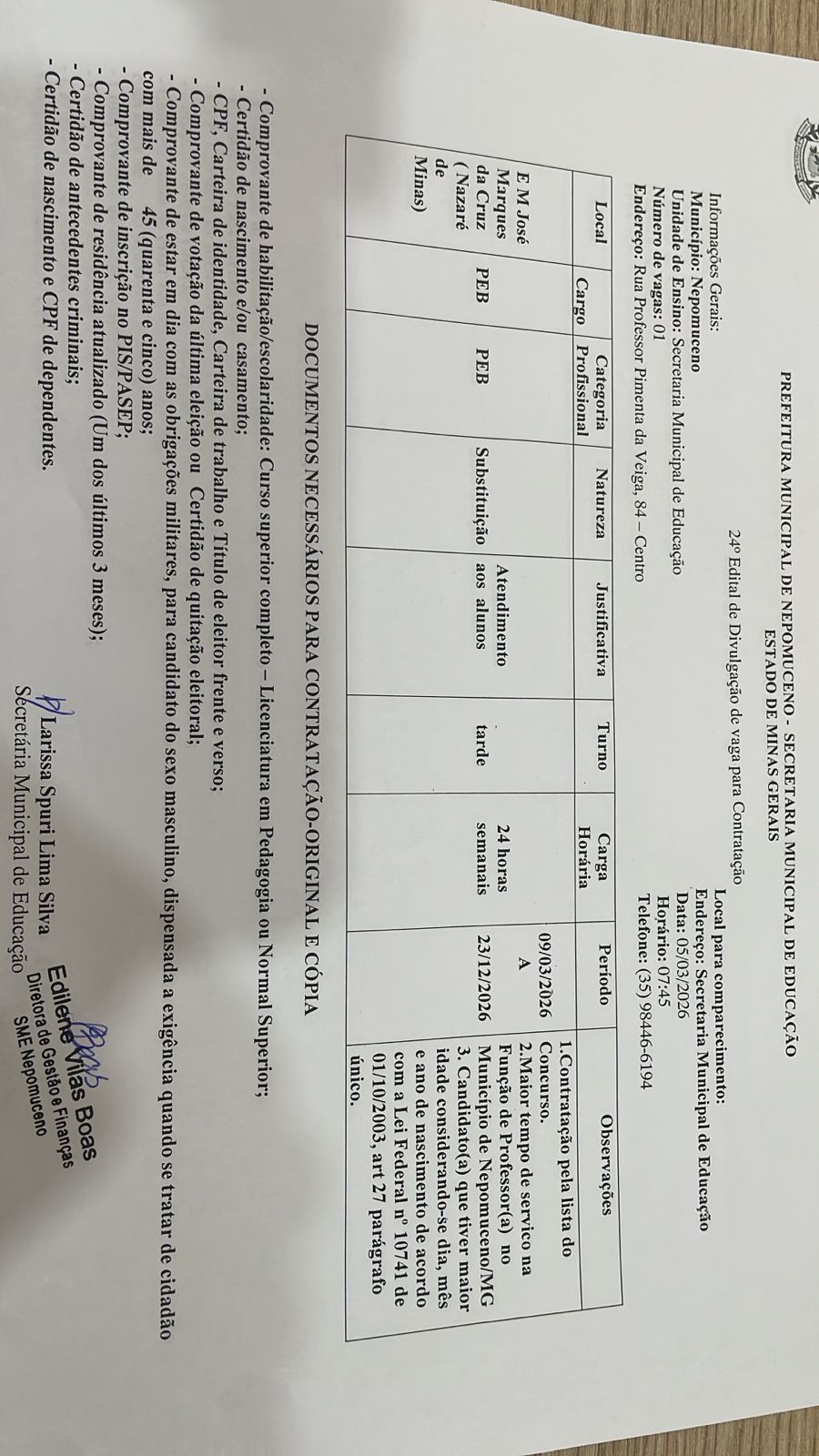 24º EDITAL DE CONTRATAÇÃO DA EDUCAÇÃO
