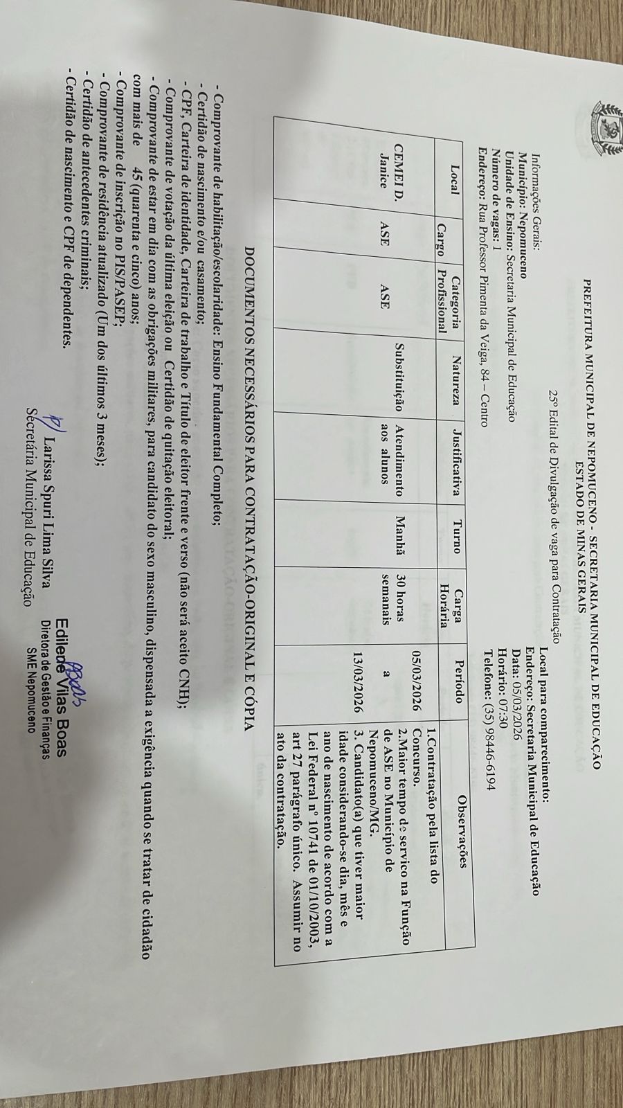 25º Edital de Divulgação de vaga para Contratação