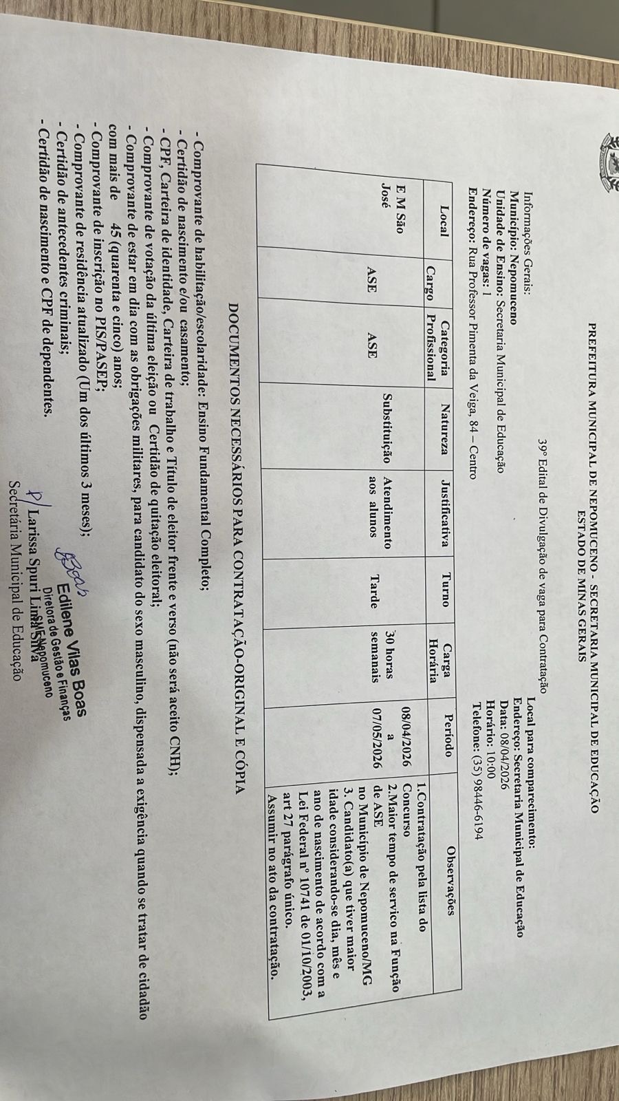 39º EDITAL DE CONTRATAÇÃO DA EDUCAÇÃO