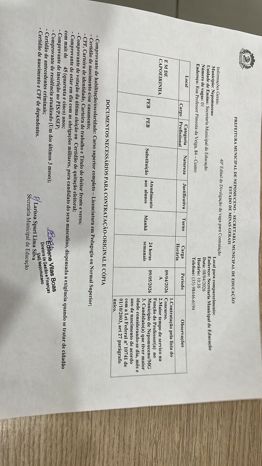 40º Edital de Divulgação de vaga para Contratação